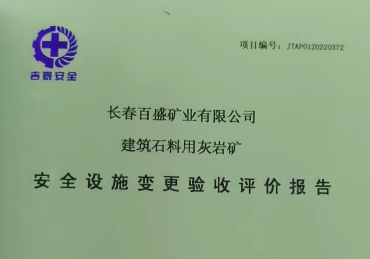 JTAP0120220372--長春百盛礦業有限公司建筑石料用灰巖礦變更設計安全...
