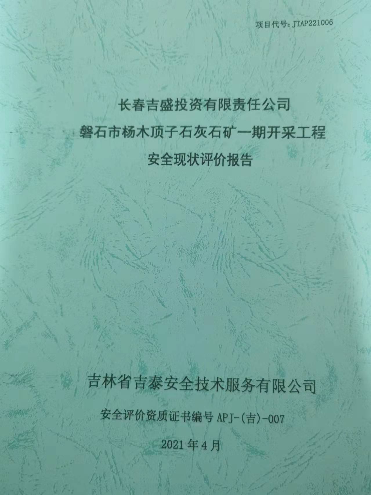 JTAP221006--長(zhǎng)春吉盛投資有限責(zé)任公司磐石市楊木頂子石灰石礦一期開(kāi)采工...