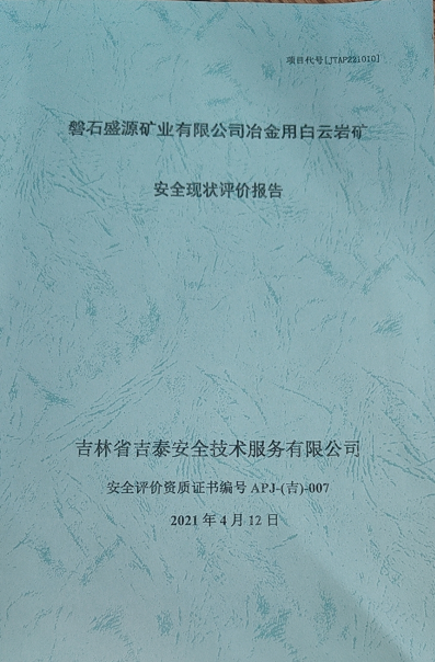 JTAP221010--磐石盛源礦業(yè)有限公司冶金用白云巖礦安全現(xiàn)狀評(píng)價(jià)