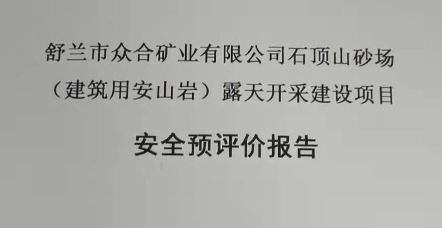 舒蘭市眾合礦業有限公司石頂山砂廠(建筑用安山巖)露天開采建設項目安全預評價