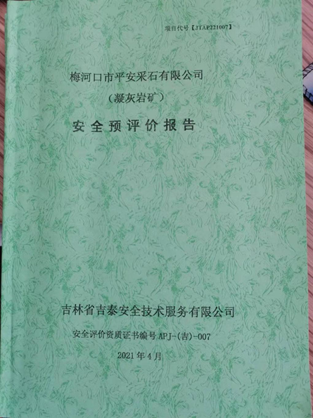 JTAP221007--梅河口市平安采石有限公司(凝灰巖礦)安全預評價
