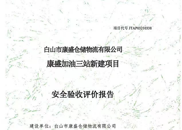 JTAP03210339白山市康盛倉儲物流有限公司康盛加油站新建項目安全驗收評價