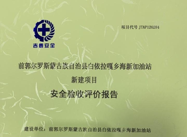 JTAP120284--前郭爾羅斯蒙古族自治縣白依拉嘎鄉海新加油站新建項目安全驗...