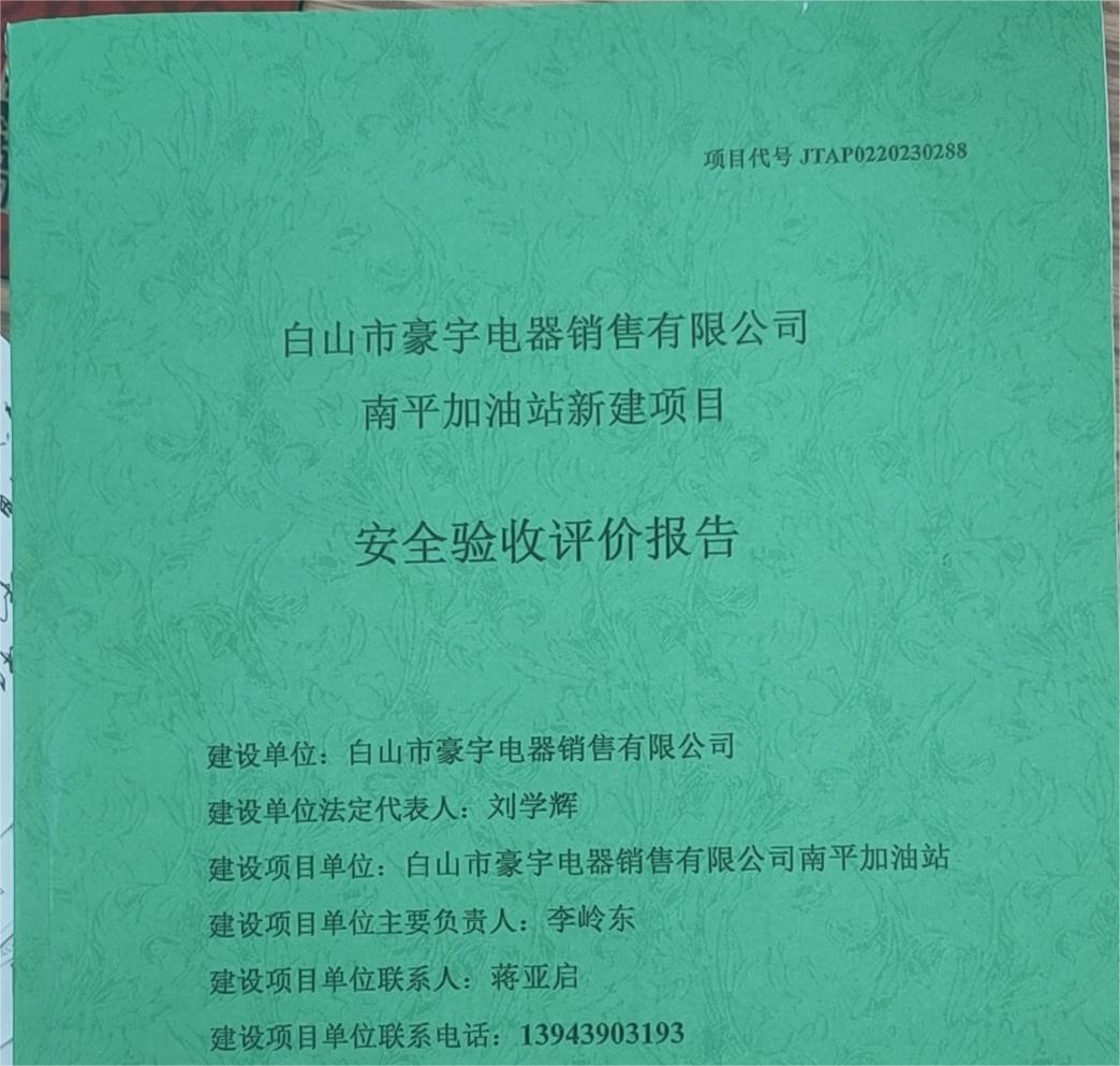 JTAP0220230288--白山市豪宇電器銷售有限公司南平加油站新建項目安全...