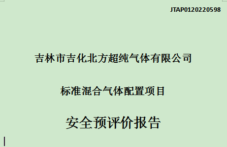 JTAP0120220598--吉林市吉化北方超純氣體有限公司安全預(yù)評(píng)價(jià)