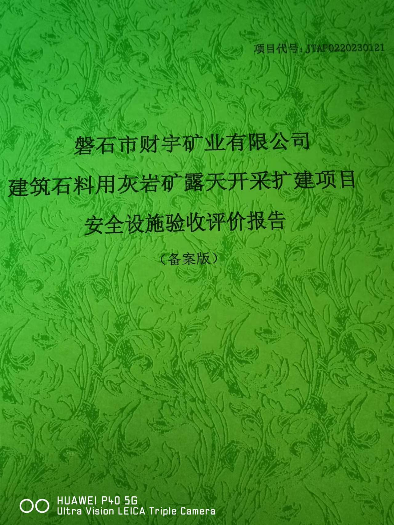 JTAP0220230121 --磐石市財宇礦業有限公司建筑石料用灰巖礦露天開采...