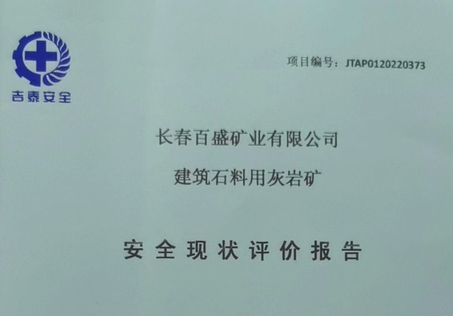 JTAP0120220373--長春百盛礦業有限公司建筑石料用灰巖礦安全現狀評價