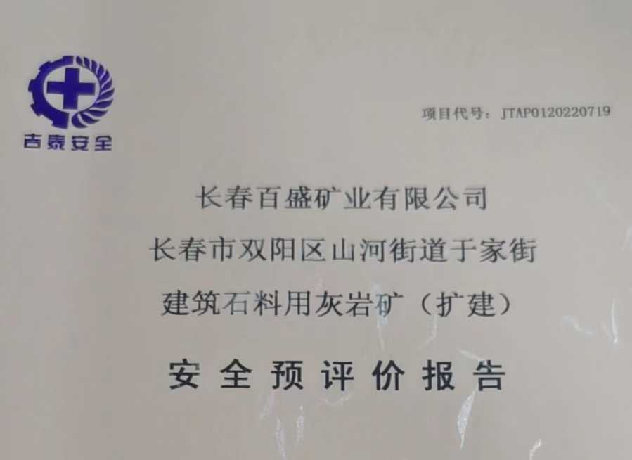 JTAP0120220719--長春百盛礦業有限公司建筑石料用灰巖礦安全預評價