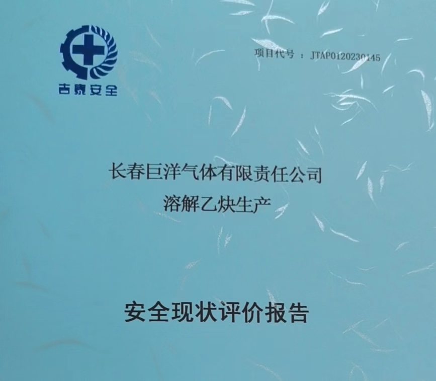 JTAP0120230145--長春巨洋氣體有限責任公司溶解乙炔生產安全現狀評價